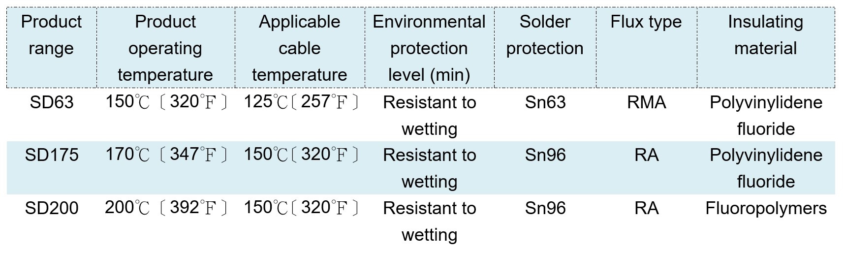 SD175 operating temperature : -55°C ~ 175°C