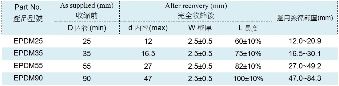 橡膠材料提供恆定的均勻徑向壓力、無需其他膠粘劑或膠帶以防止水分進入